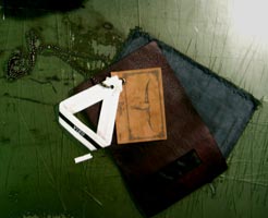 馬革(コードバン黒)、牛革(ベージュ)、鹿革(黒)の三重ラベル。